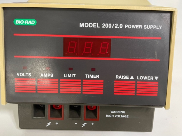 Bio-Rad’s Model 200/2.0 microprocessor controlled power supply provides constant voltage to dual output jacks under a variety of operating conditions. Voltage is continuously adjustable from 5 to 200 volts, producing up to 200 watts of power. Current limits can be set from 0.01 to 2.0 amperes to control the current generated. Although the power supply is especially useful in blotting applications, it is also useful for nucleic acid electrophoresis and for applications using the Mini-PROTEAN® II vertical electrophoresis cell.
